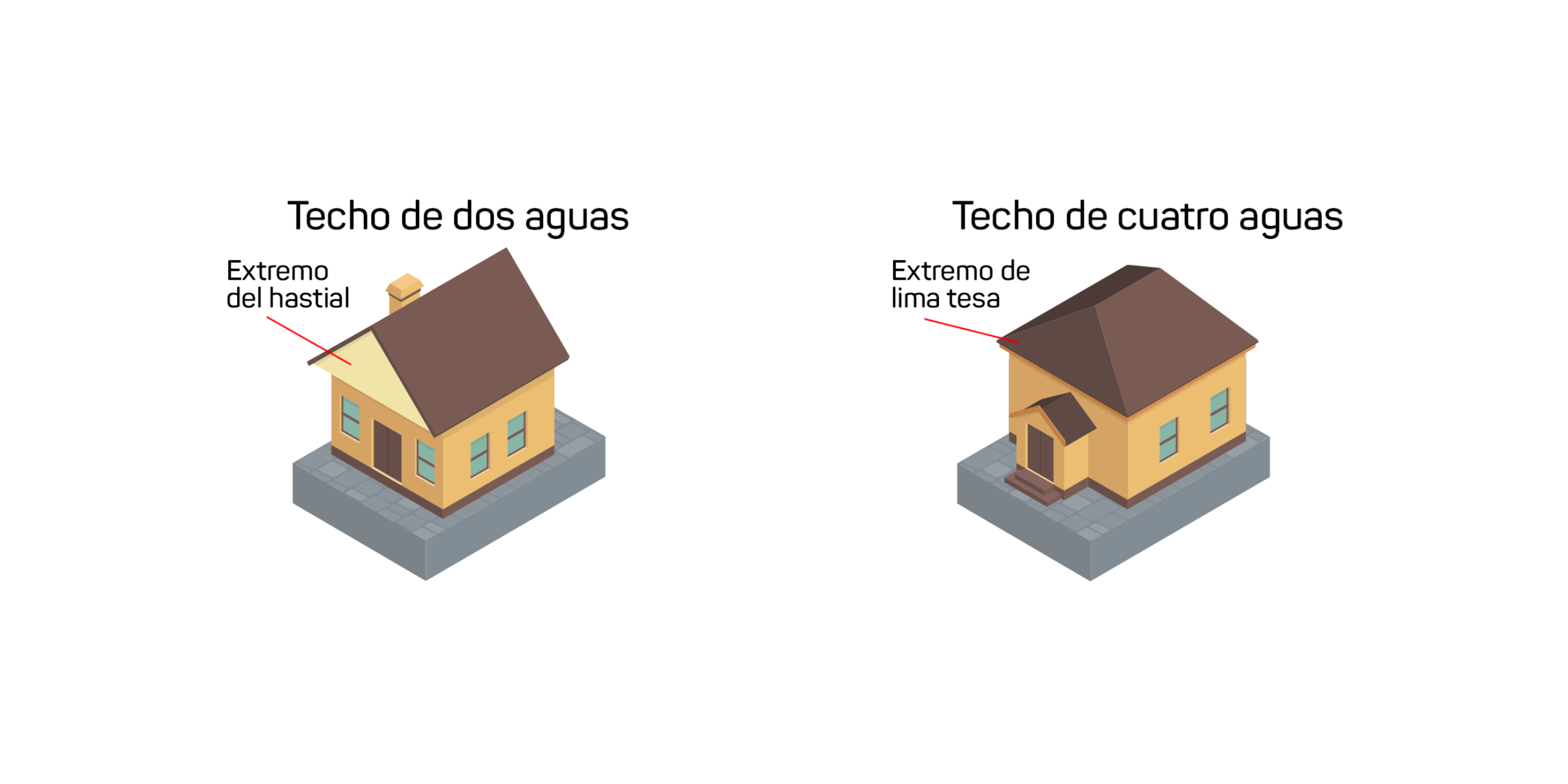 | Techos de cuatro vertientes | Techos de dos aguas |